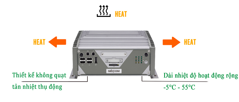 Thiết kế không quạt, ống dẫn nhiệt bằng đồng chạy qua lớp vỏ nhôm ép khối cho phép nhiệt truyền ra ngoài nhanh chóng. Thiết kế không quạt và không có cáp bên trong phù hợp để lắp đặt trong không gian nhỏ và thường xuyên rung lắc.