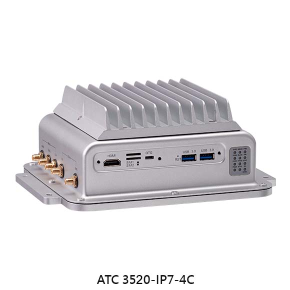 AI has become an essential component of automated vehicle technologies. With built-in cost-effective performance/watt-cost NVIDIA® Jetson Orin™ Nano SOM, ATC 3520 can deliver up to 40(sparse)INT8 TOPS for running modern AI workloads while consuming 15W low power. This is suitable for AI power IoT gateway, OHV AI Edge recognition, AI traffic sign control, and factory automation/machine vision, to enhance the productivity and lowering TCO. ATC 3520 is a fanless, compact, and IP67 certified computer. It features 9~36VDC with IGN control, 4 PoE+ for IP CAM deployment to 4Kp30/1080p60. Moreover, ATC 3520 is designed with diverse peripheral ports, like USB 3.2, isolation CANBus, RS232, Console, DI/DO, OTG, and HDMI for connecting to a wide range of devices/sensors. With the 5G NR, Wi-Fi 5/6 modules installed, ATC 3520 can enhance AI inference through Cloud Service Provider (CSP). As for harsh environment applications, ATC 3520 can operate at a wide range temperature of -30~70°C and meet the MIL-STD-810G military standard for vibration and shock resistance. In terms of regulation, ATC 3520 is compliant with CE/FCC Class A, UKCA and Emark (E13)/EN50155.