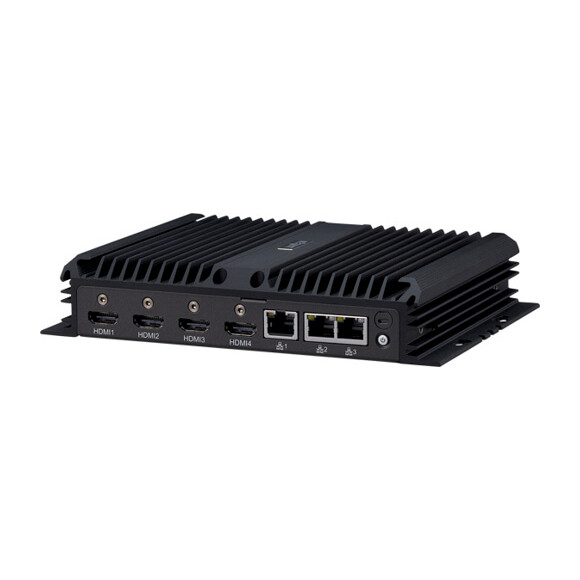 Compact fanless PC, on-board Tiger Lake-UP3 with 4 x HDMI Display